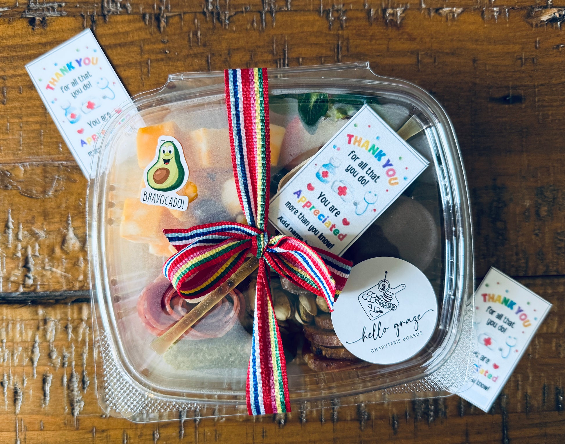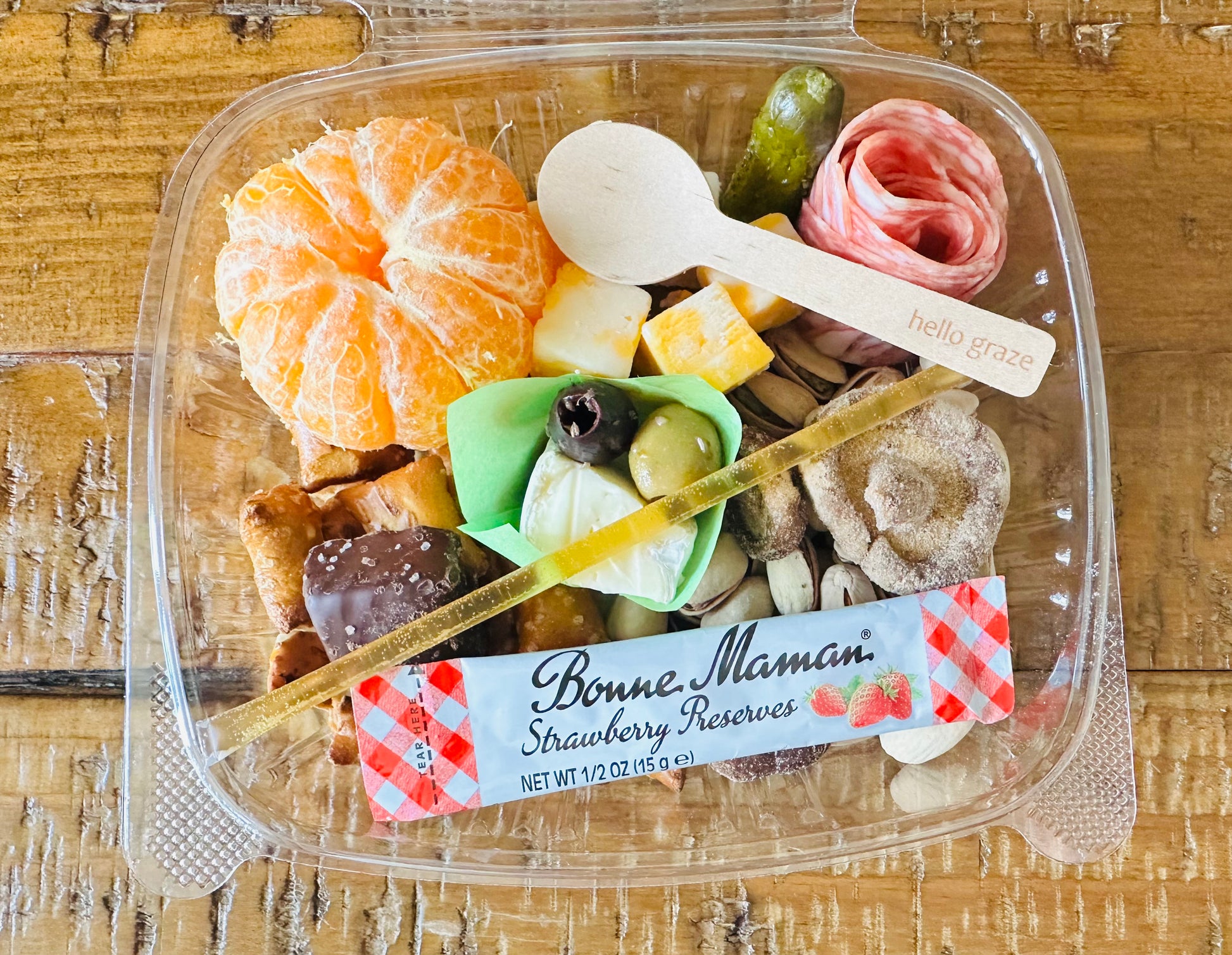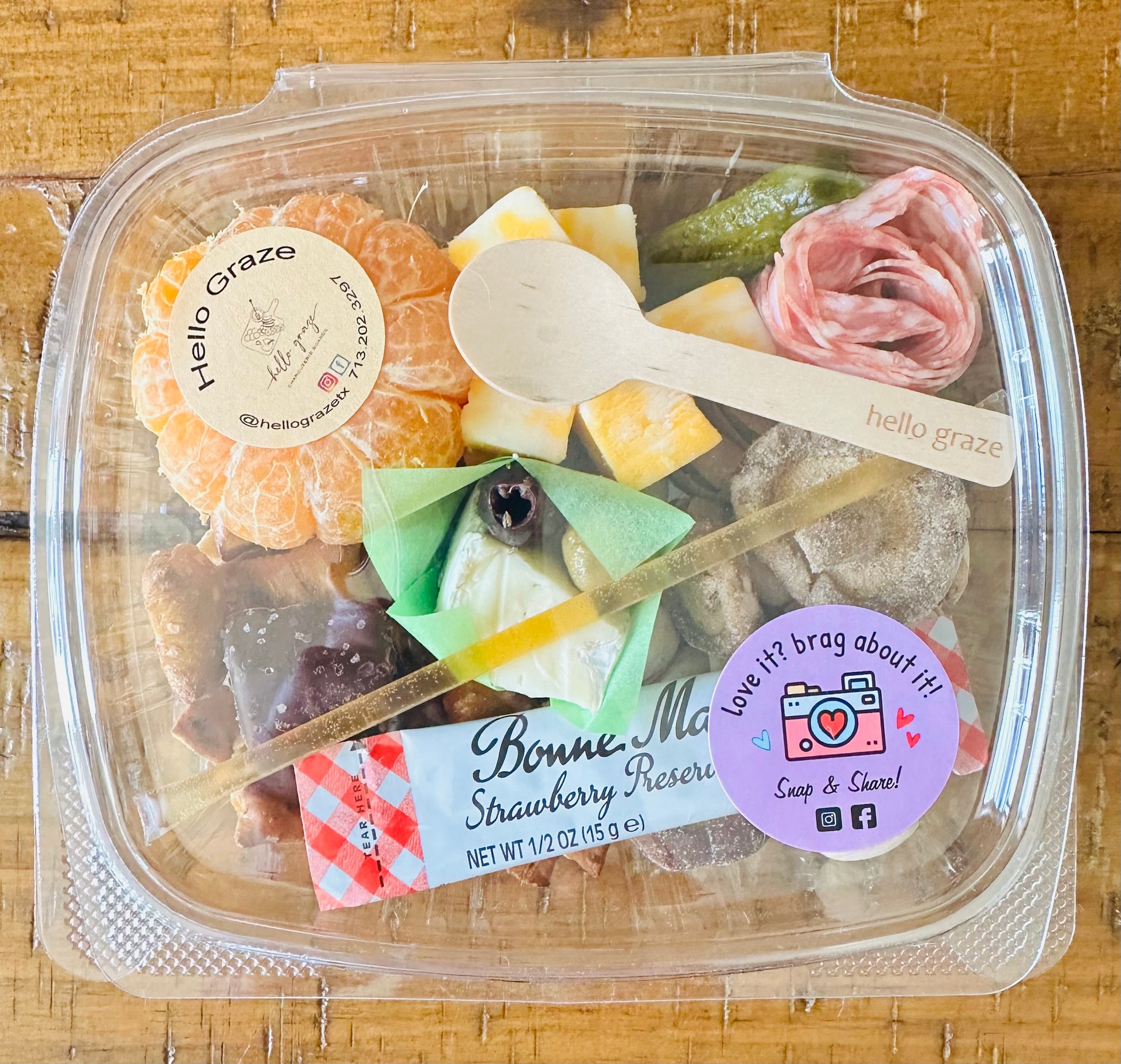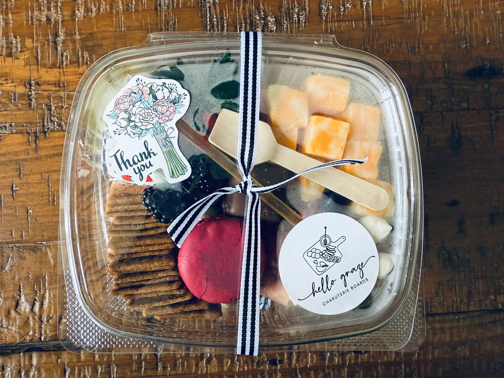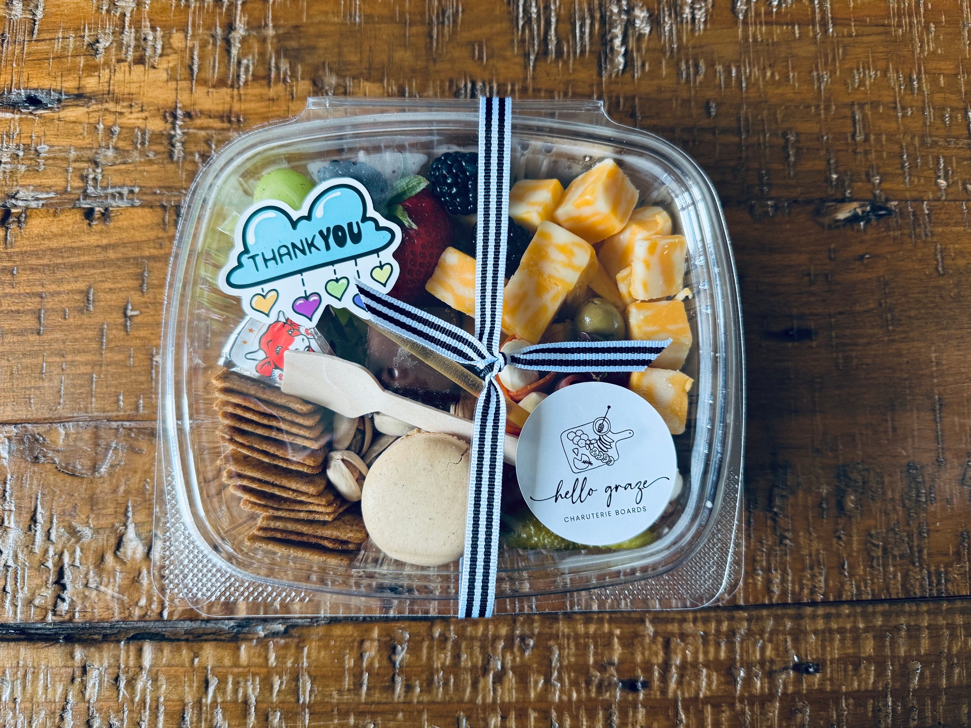 Perfect for one person. When you're on the go, get your own personal charcuterie box. A smaller version of Hello Graze's larger charcuterie boards with the same fresh and delicious graze essentials.